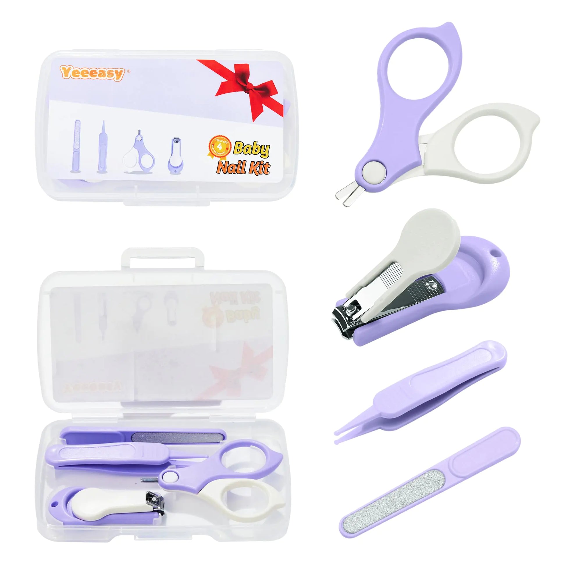 [【4-in-1 Baby Nail Kit】This baby grooming kit includes a non-slip nail clipper large-handle nail scissors a double-sided nail file and rounded-tip tweezers. The set measures 5.3 x 2 x 0.8 inches. 【Safe and Durable Materials】The plastic components of this baby grooming kit are made of ABS material which is non-toxic and durable. The metal parts are crafted from high-quality stainless steel that won’t rust or dull over time. 【The Necessity of Baby Nail Care Set】Babies have weaker immune systems and sharing nail clippers with adults can lead to bacterial infections. Using specific tools designed for different stages of a baby’s growth is better for maintaining healthy nails. 【Versatile and Portable】This grooming kit is compact and easy to carry making it perfect for travel or on-the-go use. It also makes a great gift for new parents. "【Ergonomic design】The back of the nail clippers has a raised anti-slip design and the 45-degree angle formed by the handle and the blade is more suitable for exerting force; the large handle of the nail scissors is more suitable for gripping and controlling the angle and the blunt-angle design of the scissors blades can avoid accidental injury to the baby; the surface texture of the nail file is delicate and the handle is non-slip which is very suitable for the babys soft nails; the round design of the tip of the tweezers can ensure safety when cleaning the baby."]